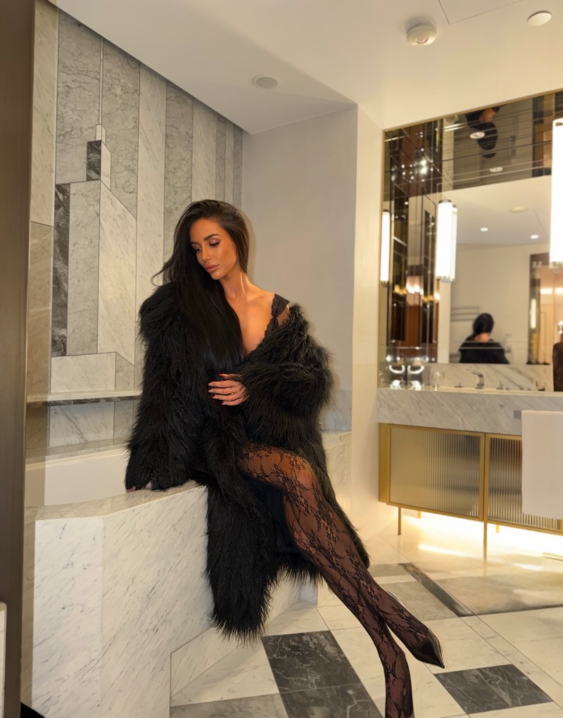 Czarne futro wykonane z wysokiej jakości sztucznego materiału. Miękkie, efektowne i niezwykle stylowe — idealne na wieczorne wyjścia i zimowe stylizacje. ✨
