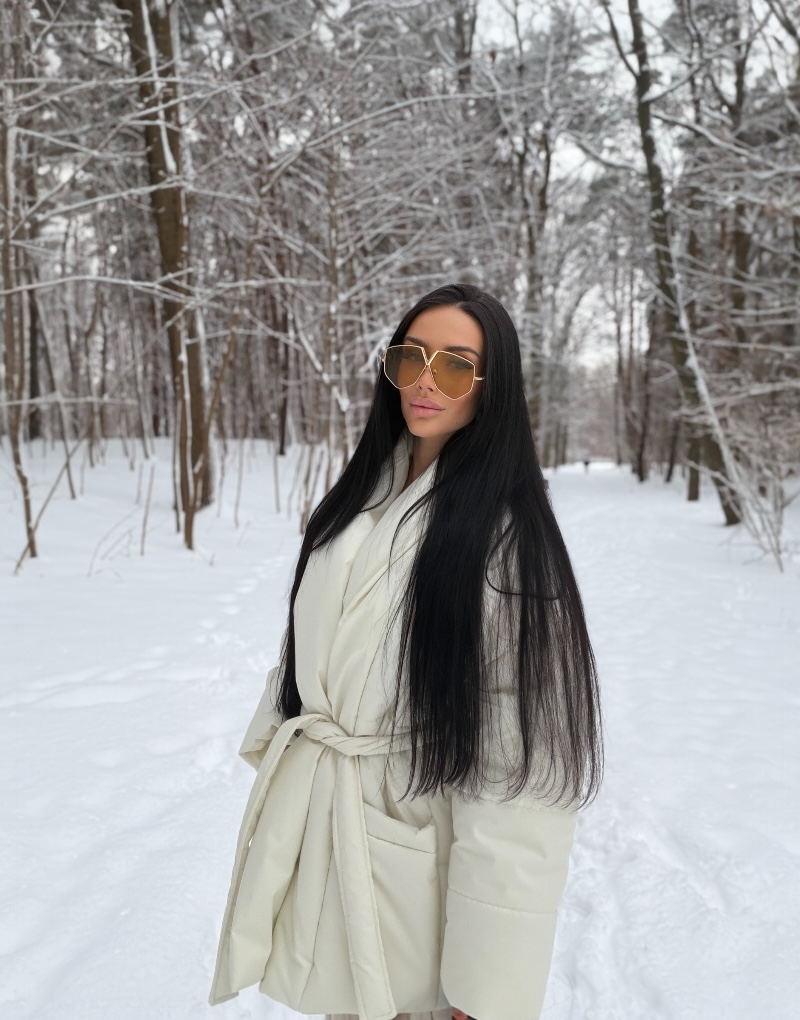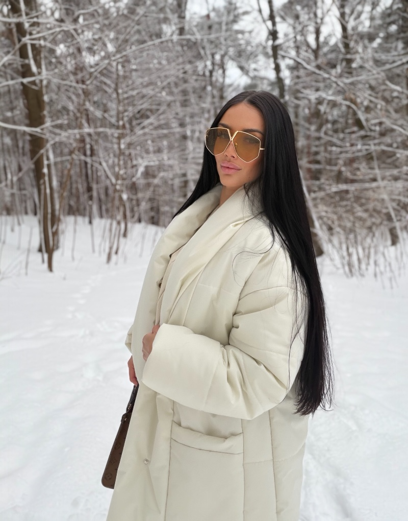 Kremowa kurtka o miękkiej, otulającej formie z paskiem podkreślającym talię. Elegancka i ciepła — doskonała na zimowe dni w stylu luxury casual.