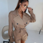 Minimalistyczny, dopasowany kombinezon, który podkreśla sylwetkę i eksponuje kobiece kształty w subtelny, ale wyrazisty sposób.