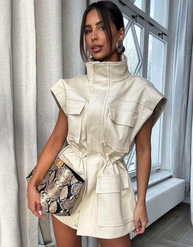 Kurtka-kamizelka jeansowa 2w1 beż EMO